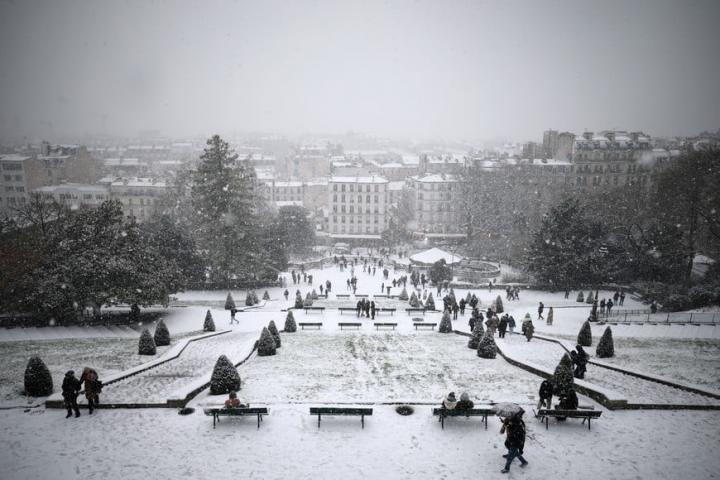 París bajo la nieve: suspenden vuelos y hay alerta naranja