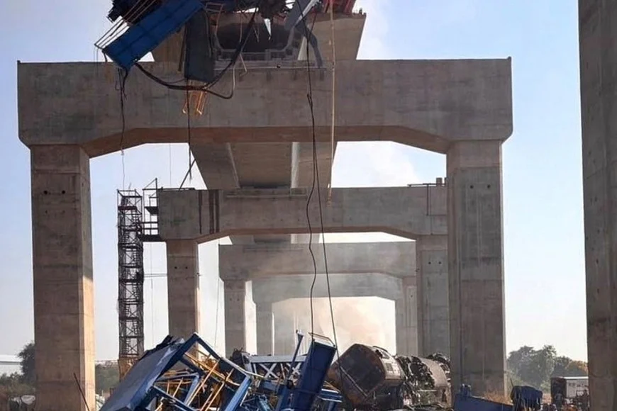 Una obra en construcción colapsó sobre una formación ferroviaria en marcha. Hay más de 50 heridos.