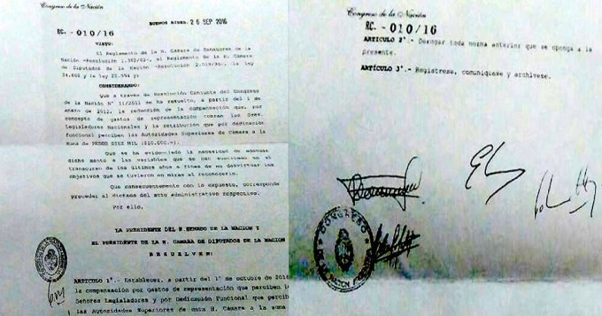 Según afirma el sitio urgente24.com, trascendieron en el Congreso de la Nación las resoluciones firmadas por Gabriela Michetti y Emilio Monzó que contienen los aumentos de senadores y diputados.